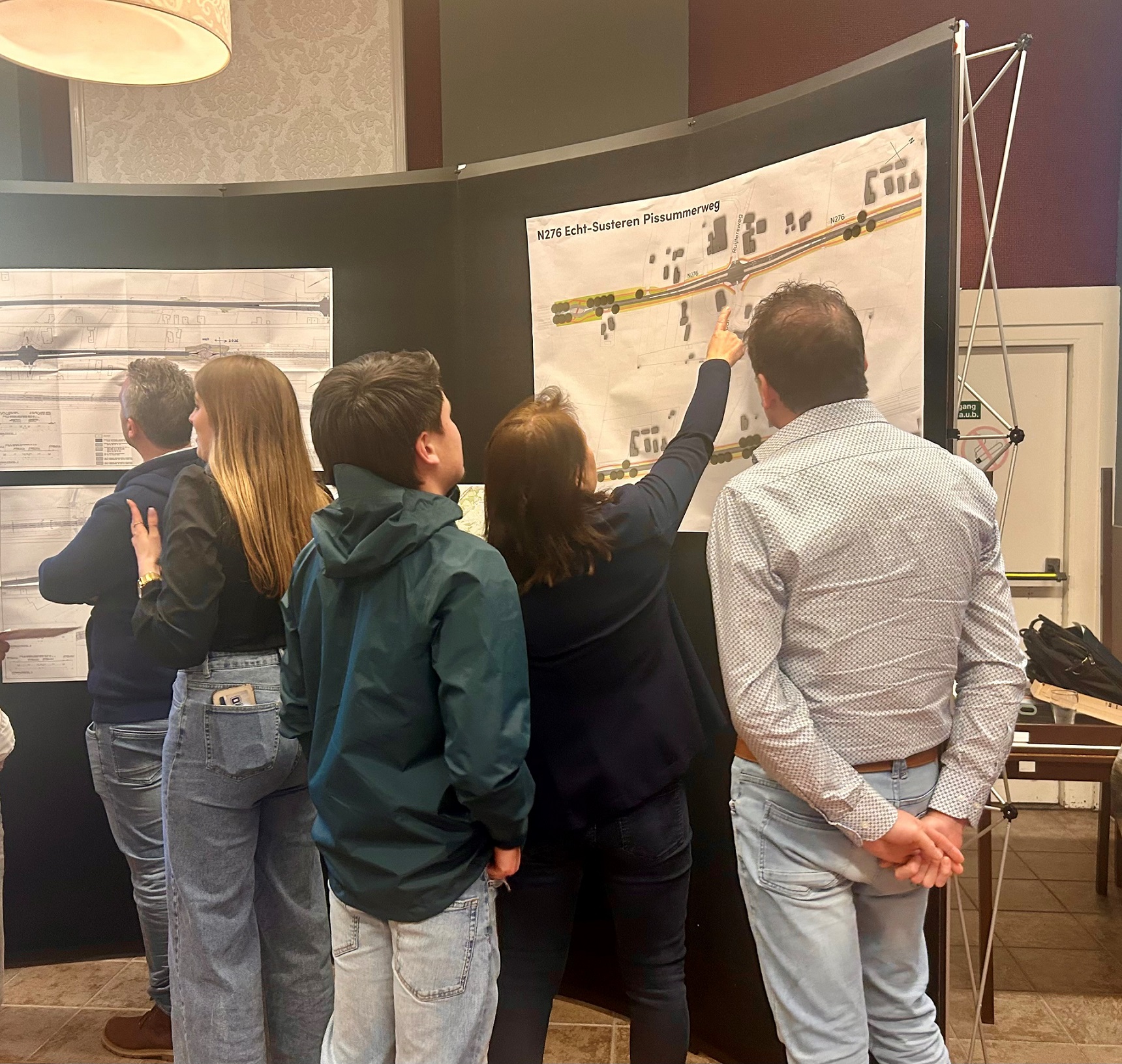 Tijdens de bijeenkomst hebben we het schetsontwerp voor de N276 gepresenteerd en een doorkijk gegeven naar de planning. Dit ontwerp is vanaf nu te bekijken op onze pagina N276 Echt-Susteren Pissummerweg (bekijk het document onder 'Zie ook').