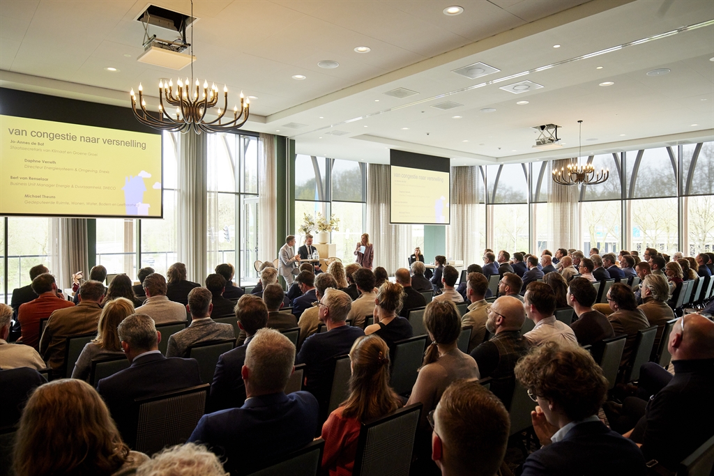 Deze editie stond in het teken van ‘van plannen naar stenen’ én hoe we met elkaar de stap maken van netcongestie naar versnelling — bouwen mét het stroomnet in het achterhoofd. Kersvers staatssecretaris van Klimaat en Groene Groei Jo-Annes de Bat opende samen met gedeputeerde Michael Theuns het event en benadrukte hoe belangrijk samenwerking is. Regionaal tussen de diverse partijnen, maar zeker ook met het Rijk.