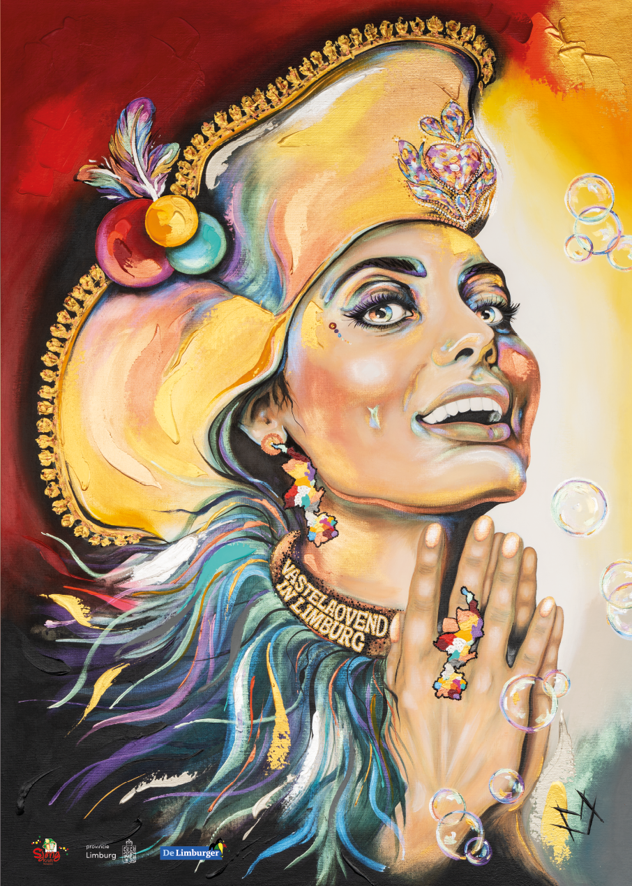 Miriam Vleugels heeft in opdracht van de Provincie Limburg de carnavalsposter 2025 gemaakt. Met deze kunstposter wordt een traditie voortgezet. Het originele schilderij wordt toegevoegd aan de kunstcollectie van de Provincie Limburg en is het komende jaar te bewonderen in het Limburgs Museum in Venlo als onderdeel van de expositie ‘Feest!’.