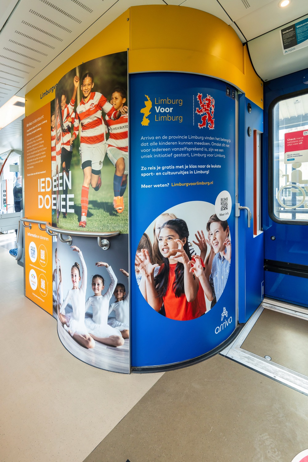 Ook op het spoor is het initiatief zichtbaar: een Arriva-trein is speciaal bestickerd als ‘Limburg voor Limburg’-trein. Binnenin vinden reizigers informatie over het project en de samenwerking met Jeugdfonds Sport & Cultuur en Stichting Leergeld Limburg.