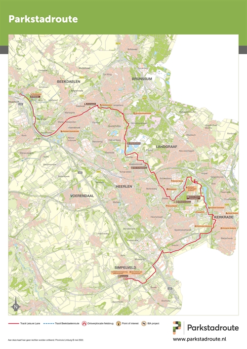 De Parkstadroute is een fiets- en wandelpad over een lengte van zo’n 34 km tussen Beekdaelen en Simpelveld. Het is meer dan een ‘gewoon’ fiets- of wandelpad, het is een attractie op zichzelf. Het is een aantrekkelijk pad door de hele regio van circa 3 meter breed en omzoomd door bermen, waarmee je het landschap en de cultuur in de regio kunt beleven. De route is recreatief, maar heeft ook praktische voordelen voor mensen die op de fiets naar het werk, naar familie of naar huis gaan.