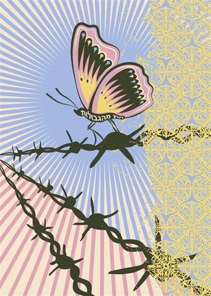 Het vijfde kunstwerk laat een vlinder zien die rustig op een stuk prikkeldraad zit, onderdeel van de omheining rond een kamp. Het werk bevat een patroon op de achtergrond, geïnspireerd door Joodse papierknipkunst, een vorm van kunst die vaak symbool staat voor veerkracht en schoonheid in tijden van beproeving. Op het lichaam van de vlinder staan subtiel de woorden "Los van grenzen" in het Hebreeuws verwerkt. De vlinder zelf is een symbool van transformatie en hoop. Het kunstwerk is gemaakt ter ere van de Limburgse Holocaustherdenking.